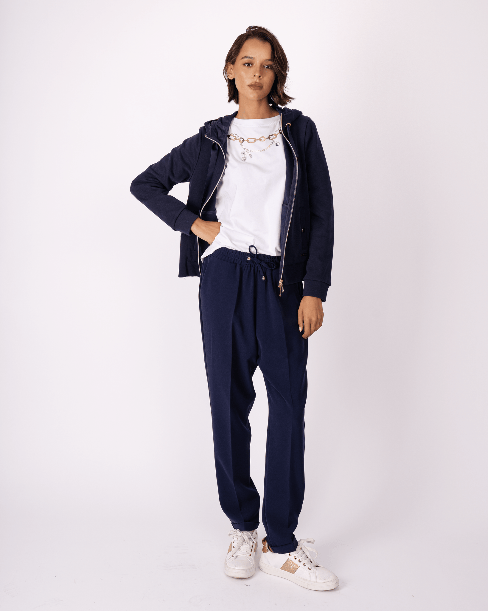 Comodi e contemporanei: questi pantaloni con coulisse sono perfetti per la vita di tutti i giorni. Il design minimal li rende adatti a qualsiasi abbinamento, dai look più rilassati a quelli più curati. Il tessuto confortevole li rende pratici da indossare dall’alba al tramonto, mentre la linea essenziale li trasforma in un capo must-have del guardaroba contemporaneo.